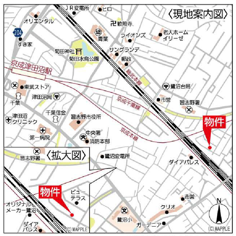 習志野市鷺沼4丁目/建築条件無し売地/鷺沼特別区画整理事業地に近い物件/道路から平坦な土地/前面道路が広い物件/閑静な住宅街